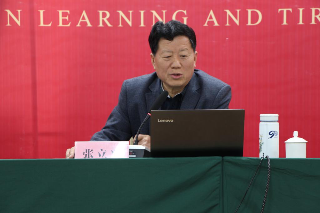 曲阜师大新闻中心讯(通讯员:曹亚楠 李豪杰 杨朔 摄影:张灵玉、许文硕) 10月25日,学生工作处特邀我校党委委员、马克思主义学部前党委书记、马克思主义学院前院长张立兴教授为全体辅导员做了题为《学悟新党章 践教育使命》的报告。学生工作处处长姜美颖与全体辅导员共同聆听了报告,活动由学生工作处副处长毛永正主持。