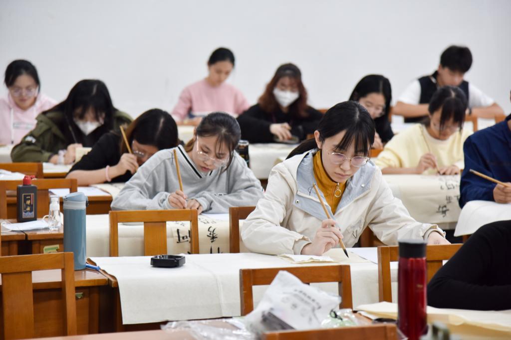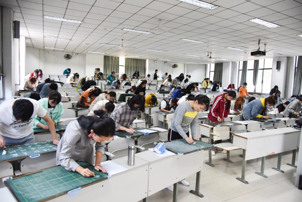 比赛过程中,选手们一丝不苟,严谨认真,提笔自信泰然,落笔行云流水。钢笔字的隽秀挺拔,粉笔字的遒劲有力,毛笔字的丰厚雍容,无不展现出曲园学子对书法独到的体会以及中华书法文化的深厚魅力。