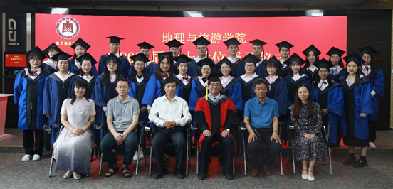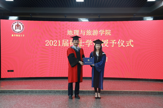 曲阜师大新闻中心讯 6月25日上午,地理与旅游学院举行2021届毕业研究生硕士学位授予仪式。学院党委书记苏占兵、院长张全景、副院长吴军、院长助理于伟出席,全体研究生导师、研究生辅导员与2021届全体毕业研究生共同参加学位授予仪式。