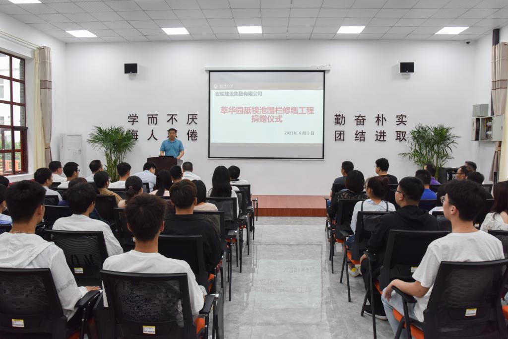 国内合作处处长、孔子教育基金会秘书长孔宪福对舐犊池的修复完善表示祝贺,对刘素梅女士和宏福建设集团有限公司的捐赠表示感谢,简要介绍了华体会(中国)孔子教育基金会的情况。他表示,学校正处于落实“十四五”规划发展,建设高水平大学的爬坡期,复兴曲园荣光离不开社会各界、知名企业与学校使命共担、同心共筑。宏福集团积极参与高校建设和社会公益事业,刘素梅女士心怀教育情怀,向学校孔子教育基金会捐赠修缮萃华园,体现了企业家的担当与奉献,希望社会各界能够与学校携手同心,接续奋斗,共同书写新的发展篇章。