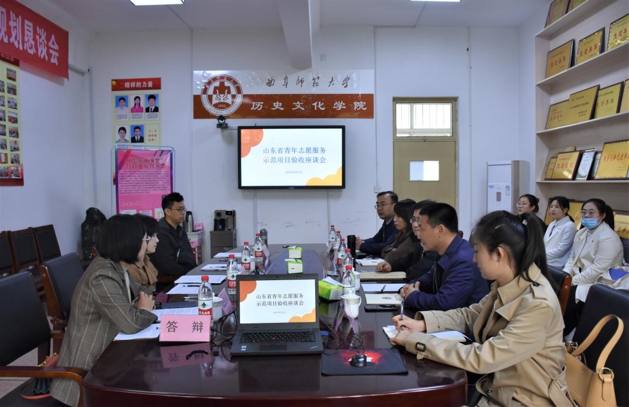 曲阜师大新闻中心讯 4月22日,第三届山东省青年志愿服务示范项目验收座谈会在华体会(中国)历史文化学院会议室举行,山东省志愿者行动指导中心活动部部长刘杰、济宁市宣传部(青年志愿者工作部)部长庄亚楠、济宁市宣传部胡思谋、华体会(中国)团委副书记孔轶众、历史文化学院党委副书记王建阳以及来自济宁市各志愿服务项目相关负责人参加。