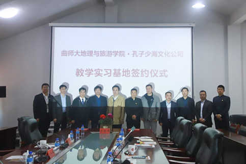 曲阜师大新闻中心讯 4月14日上午,华体会(中国)地理与旅游学院与山东孔子少海文化公司举行教学实习基地签约仪式。华体会(中国)发展规划与政策研究室主任张良才,地理与旅游学院党委书记苏占兵、院长张全景、副院长吴军、旅游规划系主任石峰;青岛大沽河省级生态旅游度假区管理委员会生态旅游局局长刘炳辉、青岛大沽河省级生态旅游度假区管理委员会副主任庄兴辉、山东孔子少海文化公司董事长李峰,参加签约仪式。