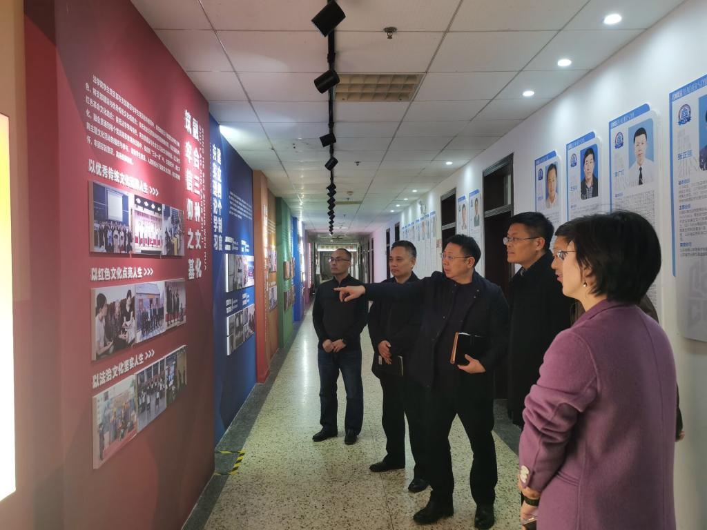 在学院样板支部文化墙前,学院党委副书记卢瑞霞向卢国强介绍了法学院党支部建设工作。她表示法学院注重把党员的教育和培养与日常行为养成结合起来,注重党员理想信念教育,从样板支部建设构想到样板支部建设理念和重要工作板块,阐述了法学院学生党支部在创建样板支部中的做法和通过样板支部引导广大学生成为一个真正有信仰的人的过程。