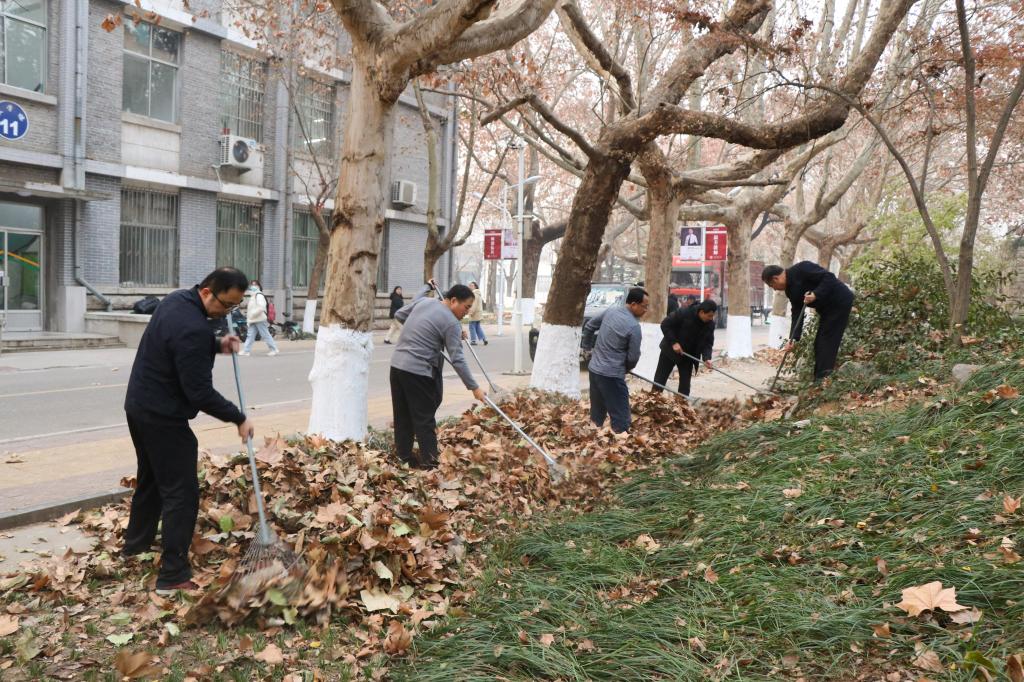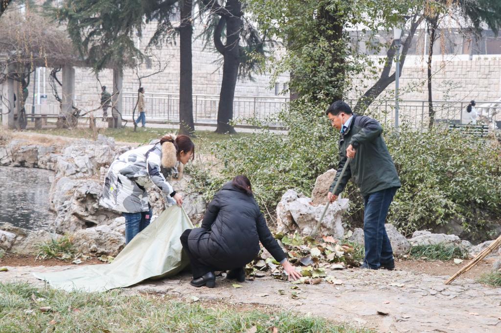 曲阜师大新闻中心讯 为迎接新年到来,美化净化校园,巩固全国文明校园成果,在今冬第一轮寒潮来临之前做好园林养护,12月28日下午,后勤党委组织全体党员开展“美化校园,清扫落叶”义务劳动,在萃华园清除校园草坪中的落叶,维护草坪的整洁,消除消防安全隐患。