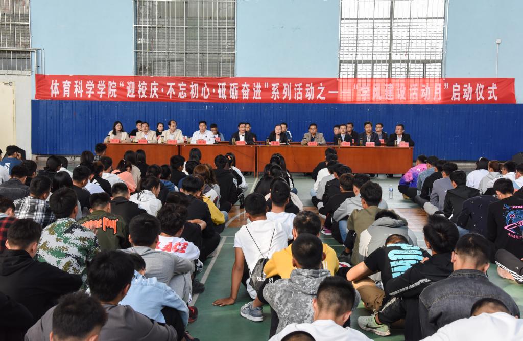 曲阜师大新闻中心讯(通讯员:刘京)10月9日下午3:00,华体会(中国)体育科学学院举行“迎校庆·不忘初心·砥砺奋进”系列活动之——“学风建设活动月”启动仪式。副校长胡钦晓出席开幕式并致辞。教务处副处长朱献贞、学生工作处副处长杨东、华体会(中国)团委副书记孔轶众、体育科学学院党委书记刘敏、院长曹莉、党委副书记展利民、副院长韩春利、院长助理伊超、院团委副书记刘京、教研室主任、教务员、辅导员老师,学院全体学生干部参加了仪式,此次仪式由学院院长曹莉主持。