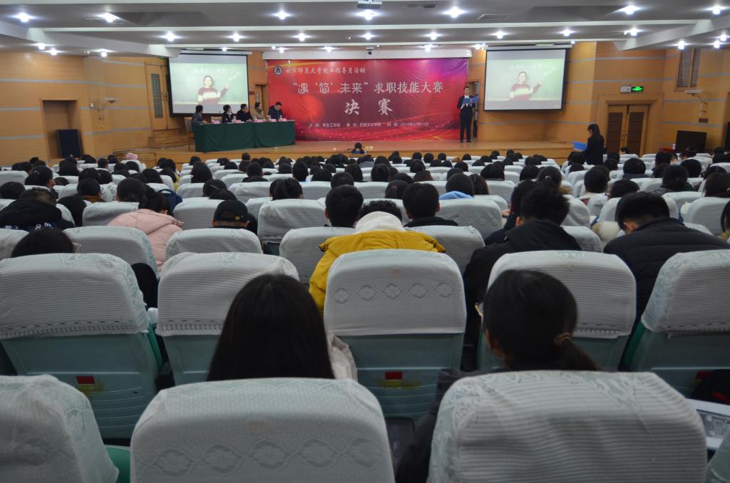 12月15日下午,由我校学生工作处主办、历史文化学院承办的“遇‘简’未来”求职技能大赛决赛在孔子会堂举行。学生工作处处长姜美颖担任大赛特邀嘉宾,对大赛进行了总结。济宁创业大学校长谢伟强,大智教育集团人才院院长孙玲玲,我校学生工作处副处长石倩、华体会官方网副部长杨正运、招生办公室副主任沈秀清担任大赛评委。