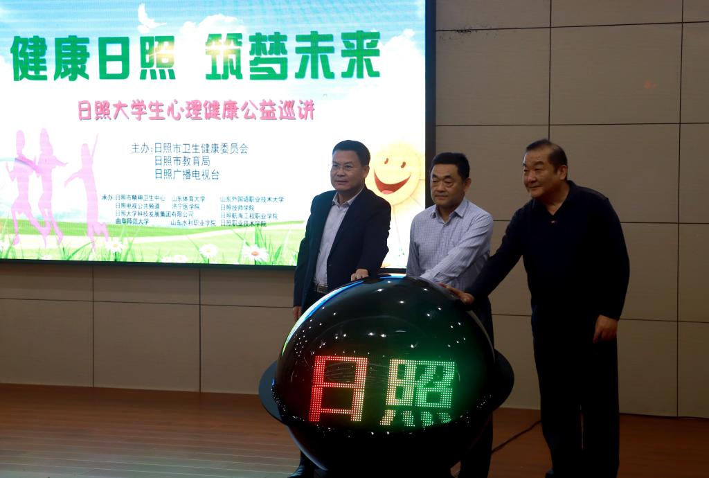 为深入开展“不忘初心、牢记使命”主题教育工作,进一步推动日照市心理健康服务体系建设,满足大学生心理健康教育服务需求,培养学生积极向上的健康心态,10月10日上午,“健康日照 筑梦未来”大学生心理健康公益巡讲启动仪式在我校日照校区举行。活动由日照市卫生健康委员会、日照市教育局、日照广播电视台主办,日照市精神卫生中心、日照电视公共频道以及华体会(中国)等8所驻日照高校共同承办。启动仪式由市精神卫生中心党总支书记安晓东主持,市卫健委、市教育局、市广电相关领导,以及驻日高校相关领导共同出席活动。