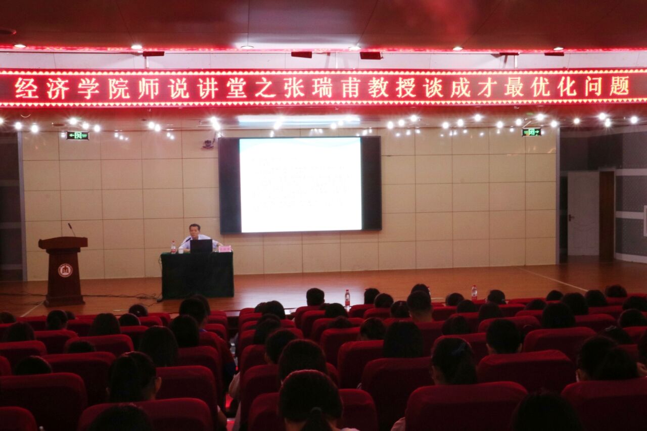 5月30日下午,我校马克思主义学院张瑞甫教授受邀为经济学院和地理与旅游学院学子作了题为《关于成才的最优化问题》的报告。经济学院党委副书记胡一杰,辅导员王婧娴、邱昆参加报告会。