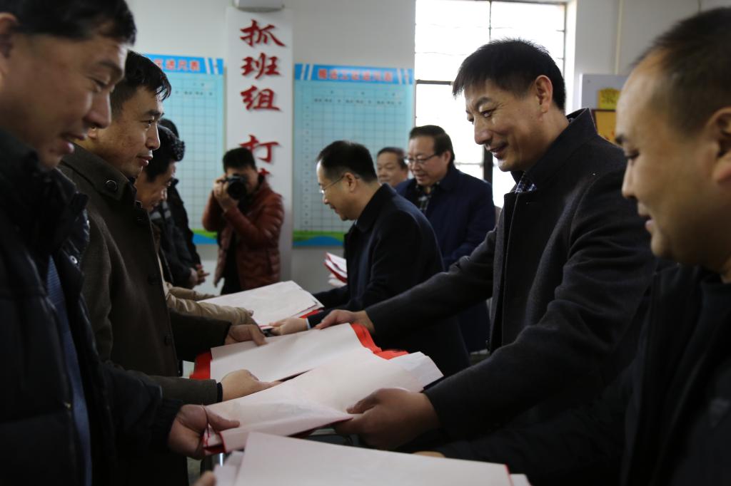活动现场,我院师生挥毫泼墨,为企业员工书写春联,受到了在场职工一致称赞。随后,在金阳矿业集团党委书记张瑞华的陪同下,郭庆兵、姜晓强亲赴生产车间,为生产一线的工人送上春联,并对大家致以节日的祝福与问候。收到春联的集团员工深受感动,对我校师生送来的关怀和祝福表示感谢,并纷纷表示,今后将以更大的热情和干劲投入到一线工作中,鼓足干劲,为改革开放贡献力量。