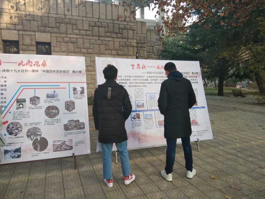 本次图片展分为三大板块:第一板块以“百年沧桑变,我辈当自强”为主题,展示了中国百年前后的巨变,让大家感受祖国日新月异的变化;第二板块以“百年前——风雨沧桑”为主题,回顾了百年前中国风雨沧桑的历史,让大家对过往历史进行深刻反思;第三大板块以“百年后——走向辉煌”为主题,展示了百年后中国取得的巨大成就,让大家抚今追昔,对祖国产生强烈的自豪感。精彩的图片展引得大家纷纷驻足,不时交流心得。