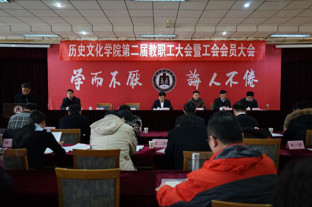 12月12日下午,历史文化学院第二届教职工大会暨工会会员大会举行,学校党委书记戚万学出席会议,学校工会副主席孙岩及学院全体教职工参加了会议。