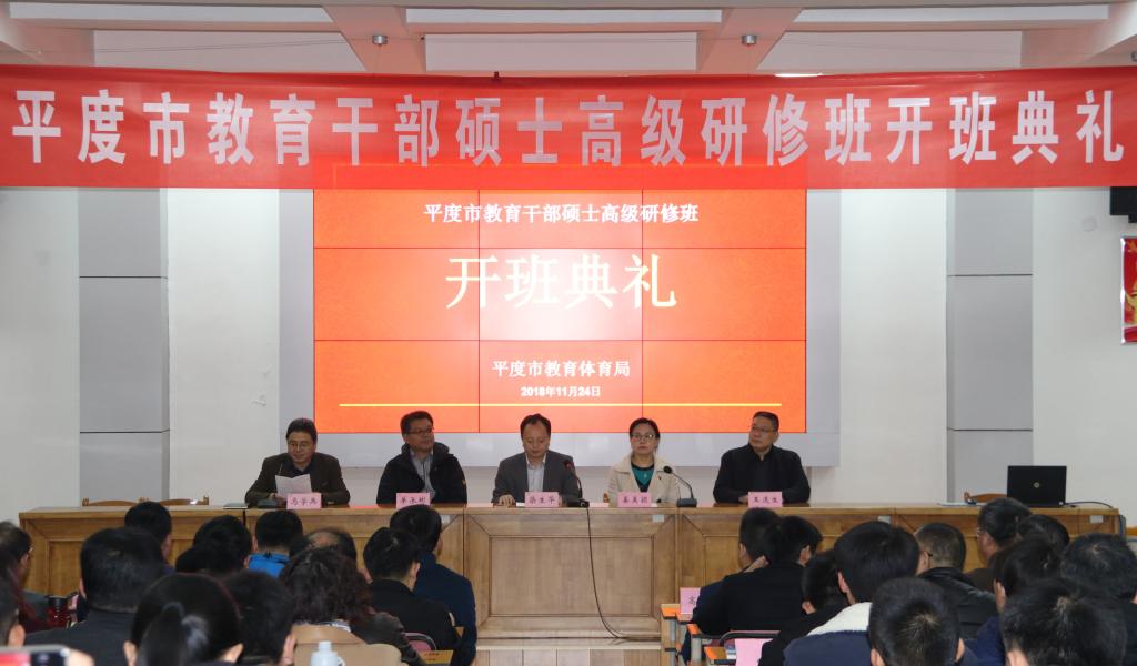 近日,教育学院与平度市教育体育局合作举办的平度市首届教育干部硕士高级研修班开班典礼暨第一期培训活动在平度一中隆重举行。教育学院党委书记姜美颖、党政办公室主任王连生、学校语言文学研究所所长单承彬、平度市教体局局长柴生华、局党委成员、教体局教研中心师训部全体人员以及首届研修班的260名学员参加了开班典礼。开班典礼由平度市教体局副局长马学兵主持。