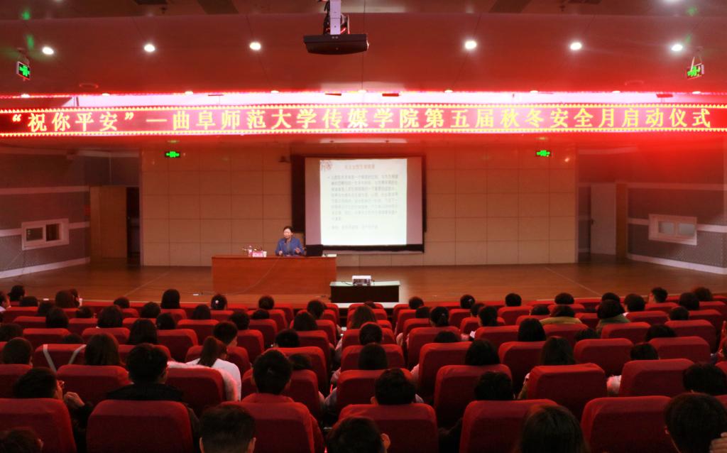 11月9日,传媒学院举行第五届秋冬安全月启动仪式。传媒学院党委书记李兴保、日照市中心医院妇产科杨灵主任、日照校区管理办公室处副主任崔波、保卫处副处长王光江、武装部副部长赵秀臣、校团委副书记刘蓉出席仪式,学院2018级本科生参加本次活动。启动仪式由传媒学院党委副书记徐正伟主持