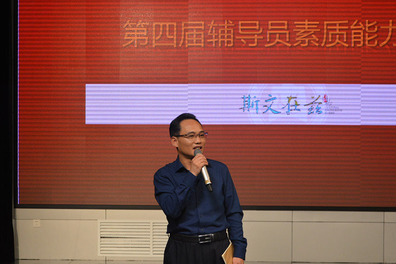 10月26日,我校第四届辅导员素质能力大赛决赛落幕。经过上学期初赛笔试阶段基础知识测试、网文写作的角逐,有10位来自各学院的一线辅导员进入决赛。南京航空航天大学马克思主义学院院长王智,山东高校德育研究中心主任、山东师范大学华体会官方网部长姚昌,我校华体会官方网部长纪洪涛,团委书记宋国栋,教育学院党委书记姜美颖,管理学院党委书记刘进,大学生思想政治教育研究中心主任王志华担任评委。