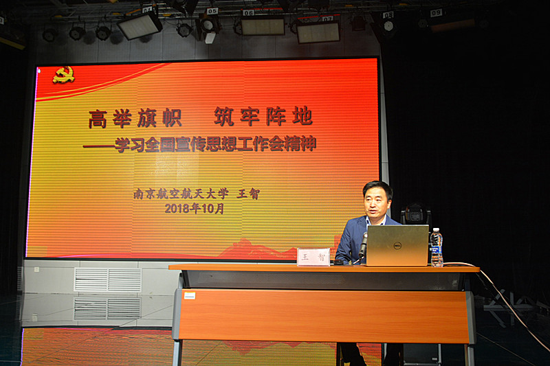 赛前,南京航空航天大学马克思主义学院院长王智为在座的辅导员、班主任做了题为“高举旗帜 筑牢阵地——学习全国宣传思想工作会精神”的报告,从历史、理论、现实、空间、媒介五个向度,通过大量生动的案例讲解了当前意识形态领域面临的形势背景,使大家认识到意识形态的极端复杂性,并阐明了新形势下宣传思想工作的使命任务:举旗帜、聚民心、育新人、兴文化、展形象。