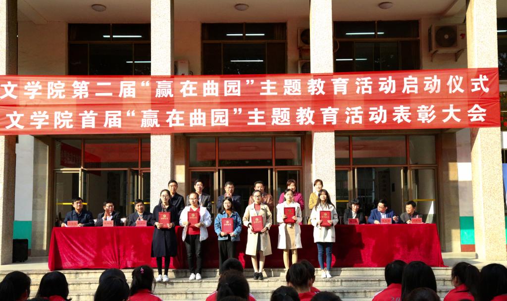 10月24日,文学院第二届“赢在曲园”主题教育活动启动暨首届“赢在曲园”主题教育活动表彰大会举行。党委组织部、华体会官方网、学生工作处、教学研究与评估中心主任、团委、文学院等单位负责人及文学院学生代表参加了活动。