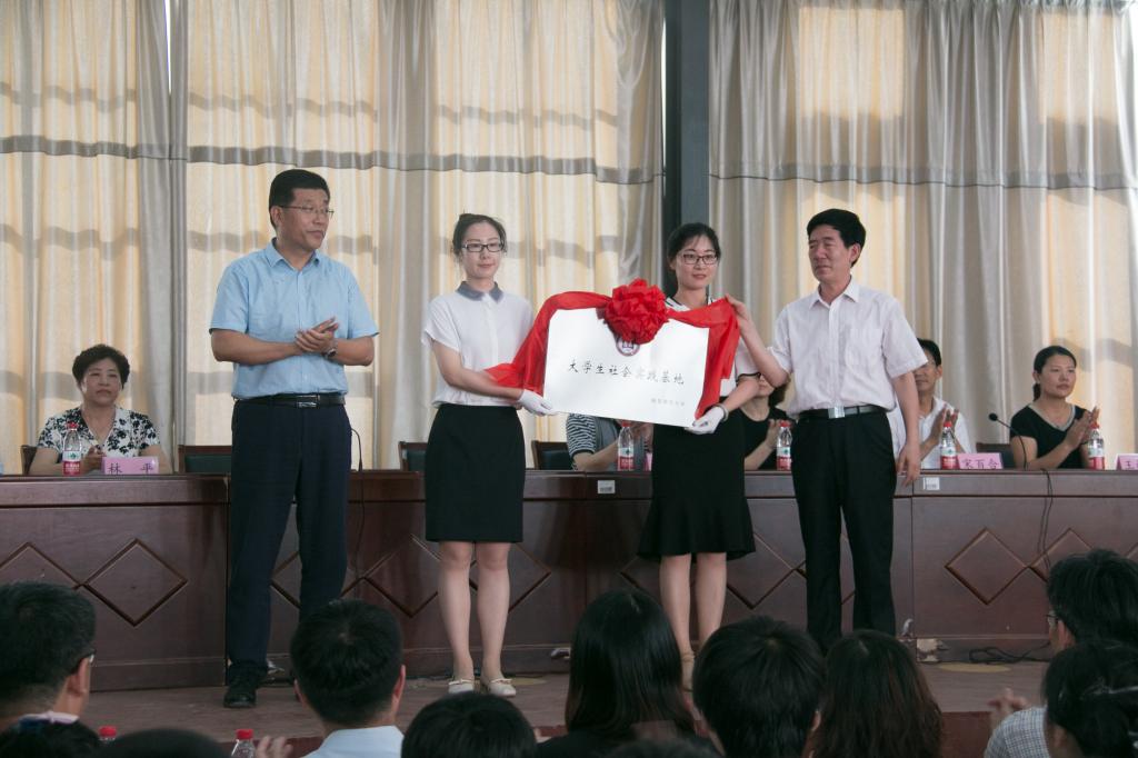 杨永明、何昭波为我校大学生社会实践基地揭牌,张书东、宋百合为华体会(中国)教学实习基地揭牌。