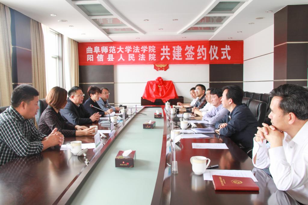 5月6日,我校法学教学实践基地落户阳信县人民法院,法学院院长张益刚、党委副书记卢瑞霞、副院长李冬楠,阳信县人民法院院长孙卫国以及全体领导班子成员共同出席了签约揭牌仪式。