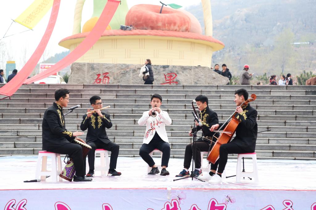 4月5日上午,临沂市莒南县涝坡镇2018年“山水涝坡·醉美桃花”桃花节隆重开幕。我校音乐学院和美术学院50余名大学生应邀表演了精彩的文艺节目。莒南县委副书记李殿勇、我校党委组织部长郭庆兵、我校派驻涝坡镇第一书记工作组、县直相关单位代表及涝坡镇党政负责人出席活动。