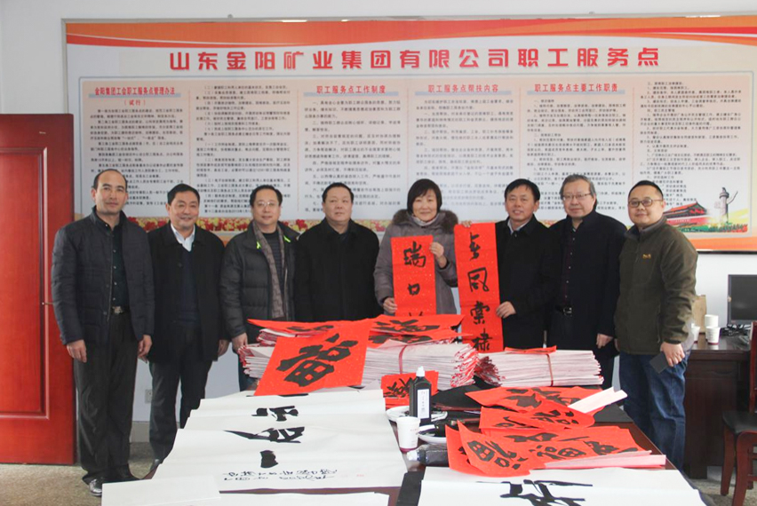 1月25日、26日,党员师生代表带着笔墨纸张,来到山东金阳矿业集团有限公司以及曲阜市奎文社区服务中心送春联送祝福。校党委组织部副部长姜玲,书法学院党委书记姜晓强以及专业教师代表参加了活动。师生代表不顾旅途劳累和天气严寒,现场泼墨挥毫,为职工写春联、送祝福。一幅幅鲜红的春联、一张张欢快的笑脸,给冬日的矿区、社区增添了节日的气氛。