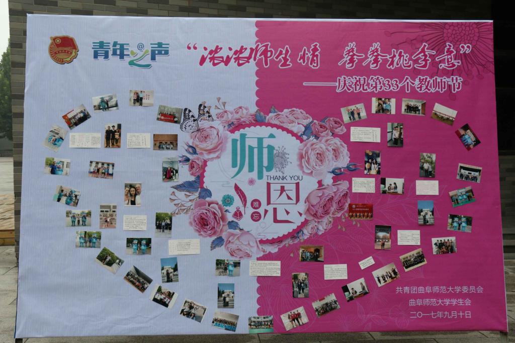 又一载流光溢彩,再一季桃李芬芳。为迎接第三十三个教师节,校团委举办了“浓浓师生情 拳拳桃李意”教师节系列活动,表达对老师诚挚的谢意和真诚的祝福。