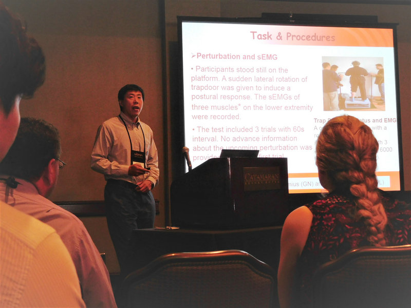 6月4-8日我校在美国韦恩州立大学访学的体育教学部教师李宗涛副教授应邀参加了在美国圣地亚哥举行的北美运动和身体活动心理学会议,在动作控制与学习专栏做了《The peripheral component of reaction time on the lower extremity was related to fall risk in the female elderly》的专题报告。