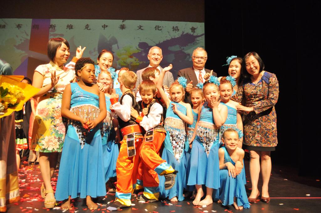 本次活动以音乐剧的方式呈现,讲述了感人的花溪传说,音乐剧以少数民族为主题,演员们穿着绚丽多彩的少数民族服装献上了令人惊艳的舞蹈和少数民族歌曲。整个剧院座无虚席,美轮美奂的舞台演出和引人入胜的故事情节深深感动了全场观众。孔院志愿者教师陈俊锋、王静丽带领公园街小学学生为观众们献上了优雅的傣族舞蹈,女孩子们身着湖蓝色的中国传统傣族服饰在舞台上翩翩起舞,像一个个美丽的小孔雀,男孩子也身着鲜艳的民族服饰献上了他们帅气活泼的舞蹈,精彩的配合演出赢得了全场观众的热烈掌声。孔院教师郑晓婵与华人协会合作演唱了动人的蒙古歌曲,作为专业出身的音乐老师,郑晓婵高亢悠扬的歌声和美妙的蒙古舞蹈让观众沉醉。