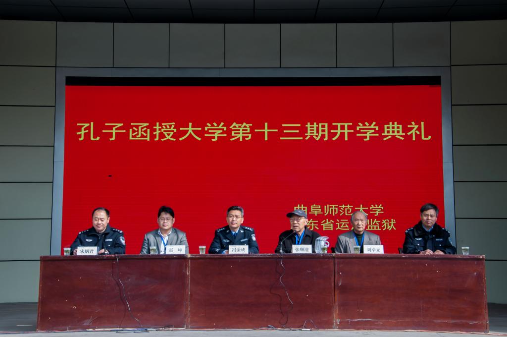 3月23日上午,由我校和山东省运河监狱联合开办的孔子函授大学第十三期开学典礼在运河监狱举行。运河监狱监狱长助理冯金成,我校原党委副书记、关心下一代工作委员会主任张顺清,文学院退休教授刘奉光,服务地方与对外合作办公室主任赵坤等出席了开学典礼。运河监狱教育科科长宋炳君主持会议。