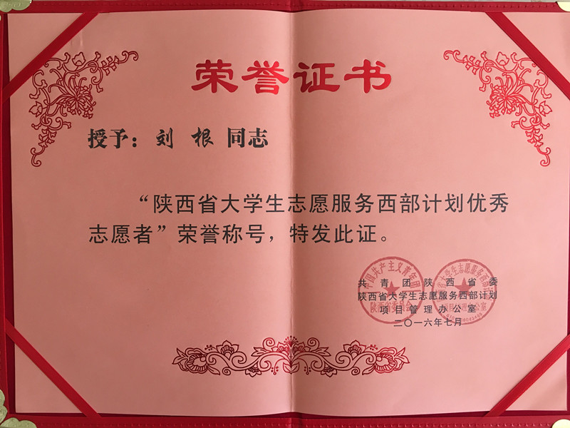 为树立典型,发挥先进的示范激励作用,陕西省团省委、省西部计划项目办决定授予157名志愿者"陕西省大学生志愿服务西部计划优秀志愿者"称号。我校第十七届研究生支教团队长刘根获此殊荣,池振昊获县级表彰。