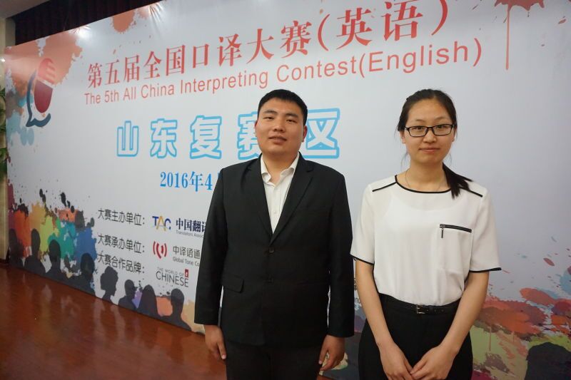 4月16日,由中国翻译协会、中国对外翻译有限公司主办,中译通科技有限公司承办的第五届全国口译大赛(英语)山东赛区决赛在山东外事中心礼堂隆重举行。外国语学院朱文青、崔培越两位同学代表华体会(中国)参加比赛,并获得优秀奖称号。