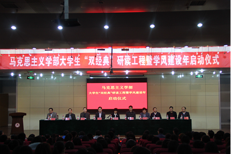 3月23日下午,马克思主义学部“大学生‘双经典’研读工程暨学风建设年”启动仪式在日照校区举行。副校长康淑敏出席仪式,日照校区管委会、机关党总支、马克思主义学部、马克思主义学院、政治与公共管理学院负责人及2014级、2015级马克思主义学部学生参加。