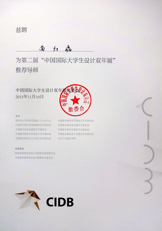 近日,我校美术学院艺术设计系苗红磊老师被聘为第二届“中国国际大学生设计双年展”推荐导师。第二届“中国国际大学生设计双年展”是由国际设计艺术院校联盟(Cumulus)、中国美术家协会平面设计艺术委员会、中国美术家协会插图装帧艺术委员会、中国美术家协会动漫艺术委员会、中国美术家协会陶瓷艺术委员会、中国美术家协会建筑艺术委员会、中国美术家协会环境设计艺术委员、中国美术家协会工艺美术艺术委员会、中国美术家协会工业设计艺术委员会、山东工艺美术学院联合举办的国际大学生设计赛事。大赛每两年举办一次,致力于为全球大学生搭建一个展示创意、设计和交流的平台,展示和推广当代大学生的设计成果,倡导系统思维、过程设计和问题解决,鼓励原创性和本土化表达,发掘富有经济应用价值和社会责任意识的设计专题研究,探索设计在跨文化语境下国际间的交流与合作,推动设计及设计教育的发展。