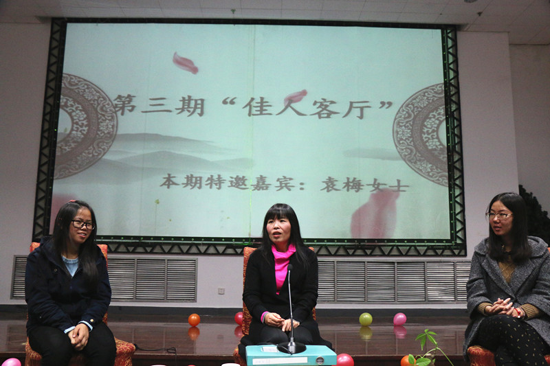 10月30日晚,我校第三期“佳人客厅”在大学生活动中心成功举办,本次活动特邀我校文学院副教授袁梅女士担任嘉宾,话题围绕“女大学生如何提升自身内涵”展开。