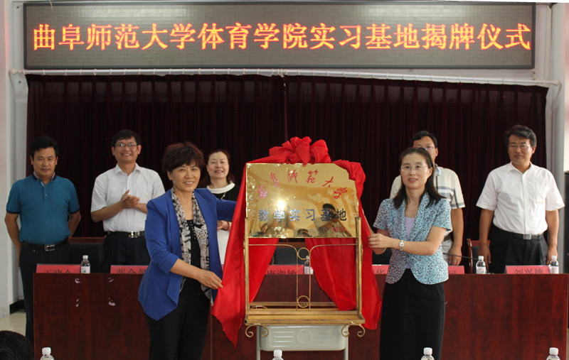 华体会(中国)体育科学学院胶州实习基地挂牌仪式于9月18日在胶州三中和三里河小学举行。我校副校长康淑敏、胶州市副市长姜青华出席揭牌仪式并为基地揭牌,我校教务处、体育科学学院、胶州体教局和胶州三中以及三里河小学负责人参加仪式。