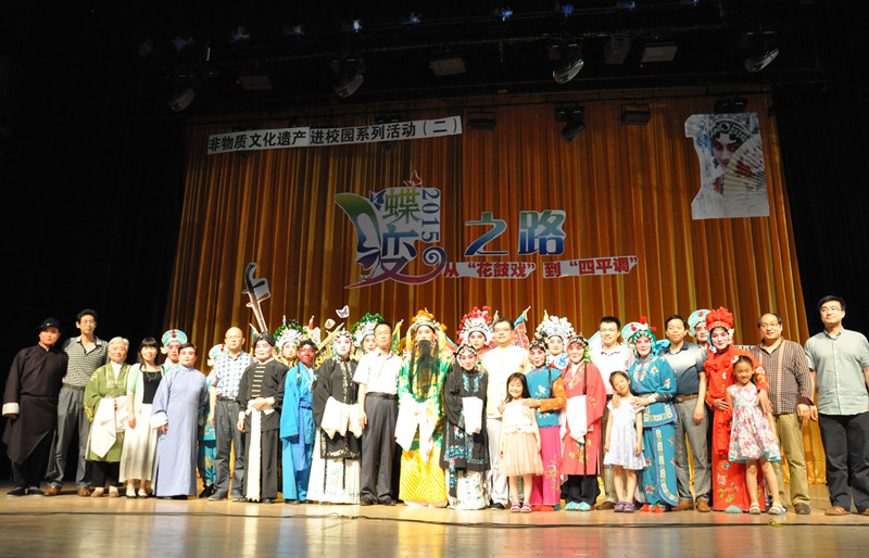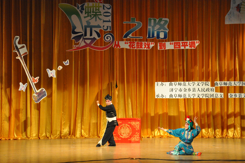 为庆祝“第十个文化遗产日”,6月16日晚,由我校文学院、国学院和金乡县人民政府共同主办,文学院团总支和金乡县文化馆共同承办的“蝶变之路——从‘花鼓戏’到‘四平调’”非遗戏曲展演活动举行。文学院党总支书记张隆海及金乡县文广新局局长陈胜利出席晚会并致辞,文学院院长单承彬为朱广英、杜雪婷、杜庆贤等三位老艺术家颁发聘书,聘任他们为文学院兼职教授。