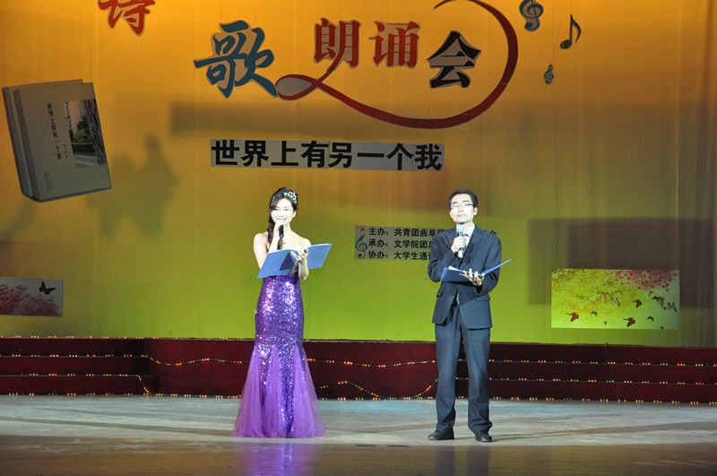 伴着一首《幸福》,朗诵会缓缓拉开帷幕。《我若为鱼》、《致所爱》、《一张童年心愿单》等诗歌,情感真挚,饱含深情;文学院李钧教授朗诵的《致母亲》献礼母亲节,温暖可亲;袁梅老师朗诵的《致逝去的老祖母》像一段老故事,如泣如诉,令听者潸然泪下;03级校友张建春、07级校友李晔、09级校友石文学、10级校友王传军等靳日波的朋友、同学、读者也来到现场,以诗会友,用一种独特的方式将对母校的敬意与爱戴淋漓尽致的表达出来,献礼母校六十周年校庆。伴随着《我青春的河,淌过你的脚畔》这首饱含回忆的诗歌,本场诗歌朗诵会带着对青春的不舍和对母校的眷恋徐徐落下帷幕。