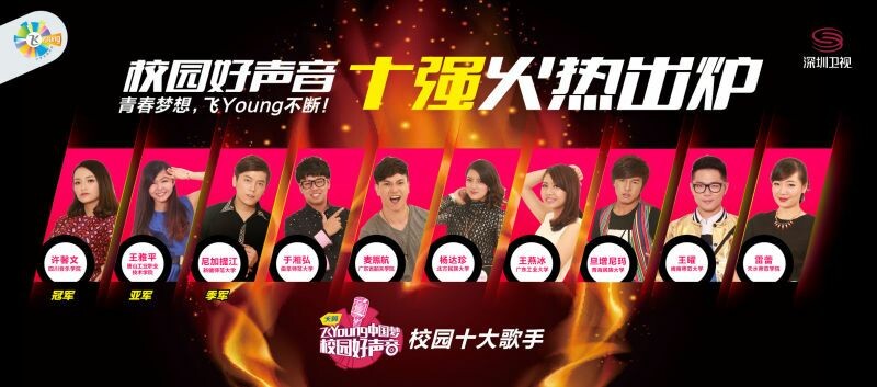 据悉,本次比赛涵盖全国31省市五千余家高校,报名人数21万,参与人数超2300万,规模之大,覆盖人数之多,关注度之高是校园歌唱比赛中前所未有的。天翼飞Young校园好声音前期分为校园海选、校园选拔、省内校际选拔三大阶段,进入总决赛的93组选手乃全国音乐精英中的精英。为了打造音乐界的“飞Young之星”,主办方为93组选手量身订制了专业的培训计划,从声乐演唱、造型包装、舞台表现等各个方面进行指导。15强选手更获得了明星导师沙宝亮、陈楚生、游鸿明、黄征、欧弟的亲自指导。