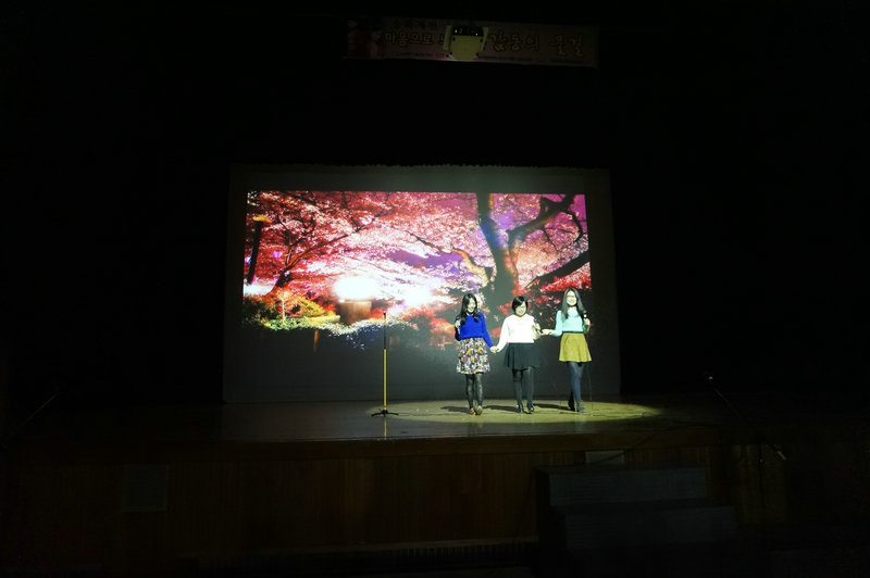本次演出在中国留学生演唱的中文歌曲《夜夜夜夜》中拉开了精彩序幕;由韩国学生朗诵并表演的诗经名篇《泽陂》、《静女》、《溱洧》和戴望舒的经典诗歌《雨巷》彰显了中国文学的魅力,开拓了听者的心灵域所,深深地感染了在座的每一位观众; 随后,由安东孔院汉语教师志愿者演唱的现代流行歌曲《只为爱上你》将整个会场的气氛活跃起来,使得汇演更加轻松愉快地进行。此外,由中韩教授们一起演唱的经典曲目《月亮代表我的心》也是本次活动的一大亮点,歌曲旋律朗朗上口,带动着在座的学生们一起大合唱起来。最后,活动在由中文系学生精心编排的大型话剧《冰雪奇缘》的美满结局中落下了帷幕。