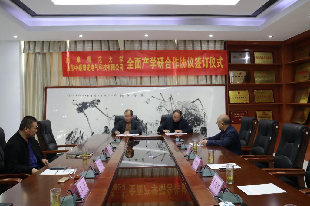 曲阜师大工学院讯 11月27日下午,曲阜师大工学院与山东中泰阳光电气科技有限公司举行校企合作办学签约仪式。工学院党委书记、院长张书东,学生工作处副处长曲涛,工学院党委副书记肖龙航,曲阜师大歌尔工学院副院长黄金明,山东中泰阳光电气科技有限公司董事长牟建等相关部门负责人参加签约仪式。