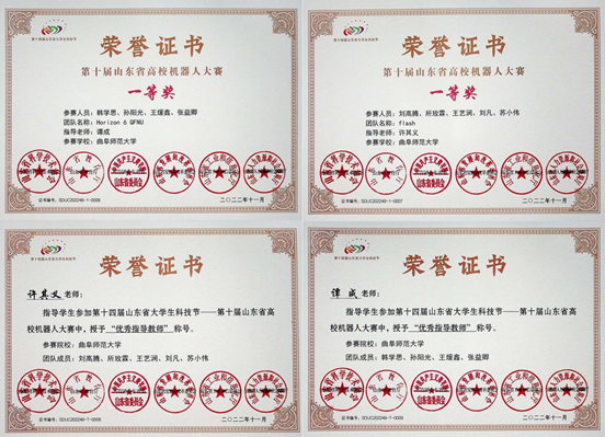 曲阜师大工学院讯 近日,第十四届山东省大学生科技节暨第十届山东省高校机器人大赛落下帷幕,华体会(中国)工学院参赛队伍在此次赛事中创造佳绩,获得一等奖2项、二等奖1项、三等奖2项,许其义、谭成老师荣获“优秀指导教师”,学校荣获“优秀组织单位”。