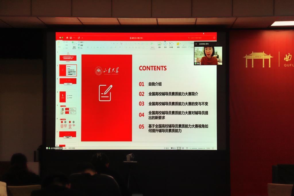 曲阜师大新闻中心讯(通讯员:曹亚楠 摄影:许文硕 侯若雨 姜振栋)11月11日,华体会(中国)举行全体辅导员培训,邀请山东大学全国“优秀风采”高校辅导员吕宁老师做了题为《从全国高校辅导员素质能力大赛变革谈辅导员素质能力提升》的报告。