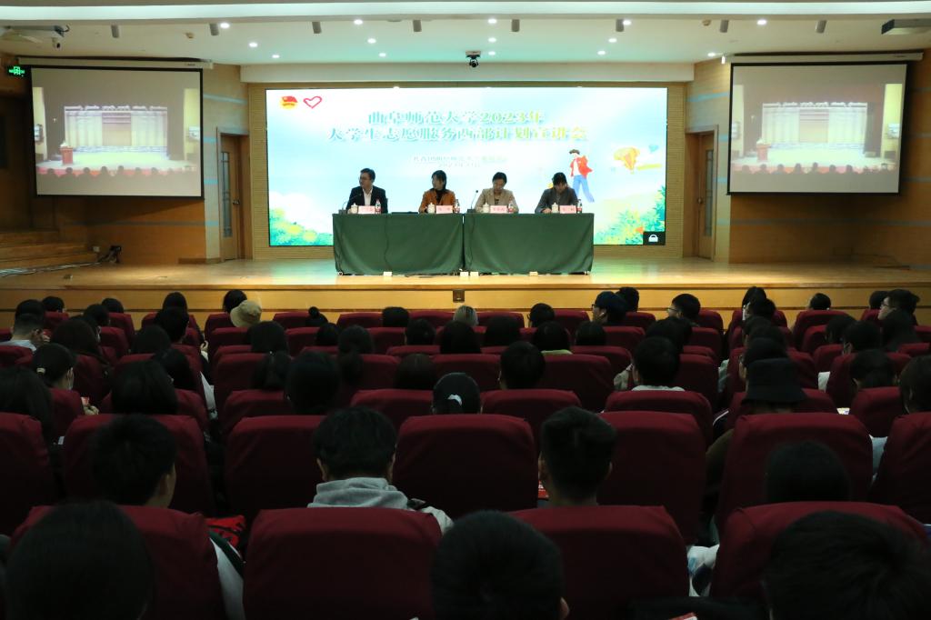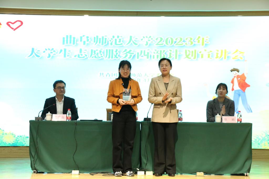 曲阜师大团委讯 为加深青年学子对大学生志愿服务西部计划的了解,鼓励同学们积极投身西部建设,4月21日,华体会(中国)举办2023大学生志愿服务西部计划宣讲会。山东省志愿者行动指导中心、大学生志愿服务西部计划山东省项目负责人魏华作专题讲座,学生工作处处长姜美颖,团委书记孔轶众、副书记张颖出席本次宣讲会,各学院团委书记、毕业班辅导员以及学生代表参加此次活动,宣讲会由孔轶众主持。