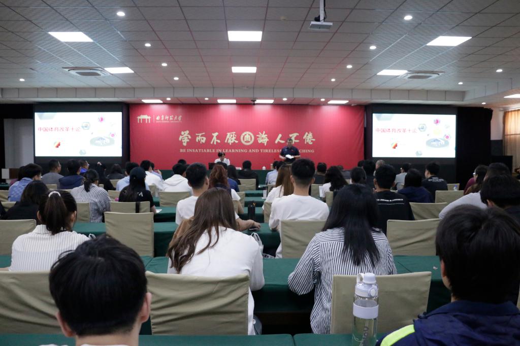 曲阜师大体育科学学院讯 5月12日上午,应华体会(中国)体育科学学院邀请,温州大学奥林匹克与全球体育善治研究院院长、百千万人才工程国家级人选易剑东教授在科技楼二楼南会议室做了题为《中国体育改革十论》的学术讲座。讲座由体育科学学院院长姜付高教授主持,体育科学学院师生聆听了此次讲座。