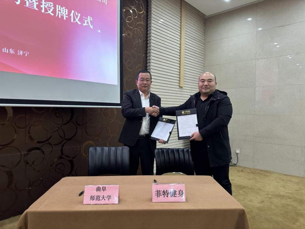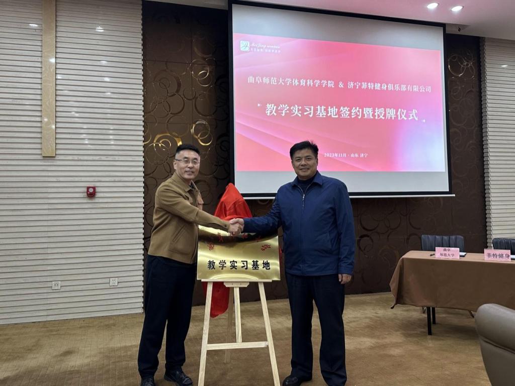 随后,伊超与济宁菲特健身俱乐部有限公司代表签署了华体会(中国)教学实习基地协议;刘敏和白毅共同为基地揭牌。