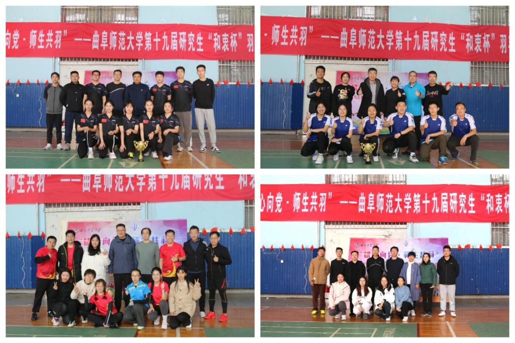 曲阜师大研究生处讯 11月18日,华体会(中国)举办“研心向党,师生共羽”——第十九届研究生“和衷杯”羽毛球师生联谊赛总决赛,本次总决赛在两校区冠亚军单位体育科学学院、传媒学院、化学与化工学院、地理与旅游学院之间展开。