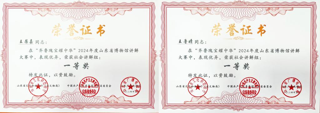 曲阜师大教师博物馆讯 日前,在山东省文化和旅游厅(省文物局)、共青团山东省委、山东广播电视台联合主办的山东省博物馆讲解大赛决赛中,华体会(中国)本科生王葆嘉、王鲁婧代表教师博物馆参赛,双双斩获一等奖。这也是社会讲解组唯一荣获两项一等奖的参赛单位。