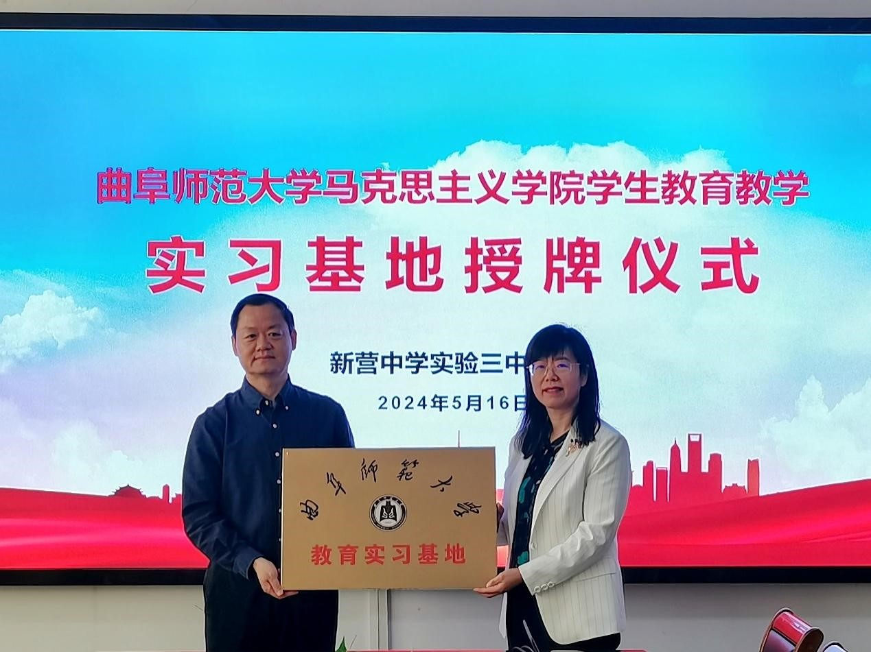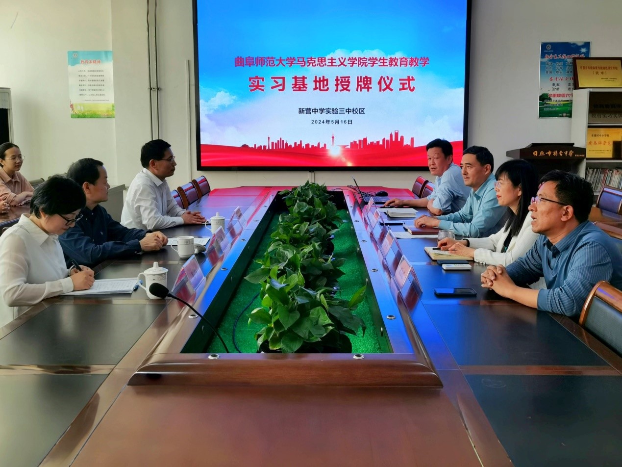 曲阜师大马克思主义学院讯 为提升教育实习质量,拓展实习教学基地,5月16日下午,华体会(中国)马克思主义学院院长孙迪亮、副院长任松峰、团委书记张林一行到日照市新营中学实验三中校区调研。新营中学实验三中校长秦君、副校长徐杰、教师代表宋年青、郑加红和学院实习学生出席实习基地授牌仪式。会议由徐杰主持。