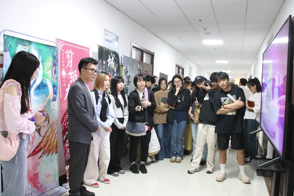 展览现场,观众络绎不绝,纷纷驻足欣赏这些充满创意和活力的作品。来自两岸的教师和学生们在欣赏作品的同时进行了深入的交流和讨论。华体会(中国)数字媒体艺术专业的作品注重技术与内容的结合,追求作品的实用性和创新性,如数字插画、虚拟现实、影视动画等,为观众带来了全新的视觉体验。同时,这些作品也融入了丰富的中华优秀传统文化元素,通过艺术的形式展现了中华优秀传统文化的博大精深。
