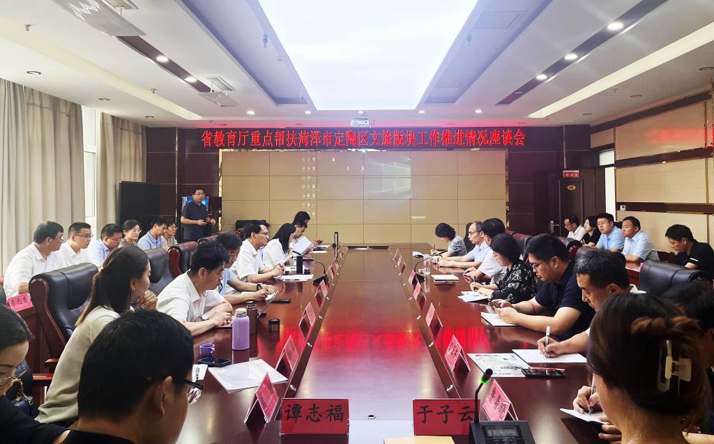 曲阜师大研究生处讯 为贯彻落实山东省教育厅重点帮扶菏泽市定陶区乡村振兴工作指示精神,着力将帮扶工作抓紧抓实抓出成效,7月10日,山东省教育厅重点帮扶菏泽市定陶区乡村振兴工作文旅板块工作推进座谈会在菏泽市定陶区举行。座谈会邀请了省内6所高校参加,华体会(中国)研究生处、地理与旅游学院负责人出席活动。