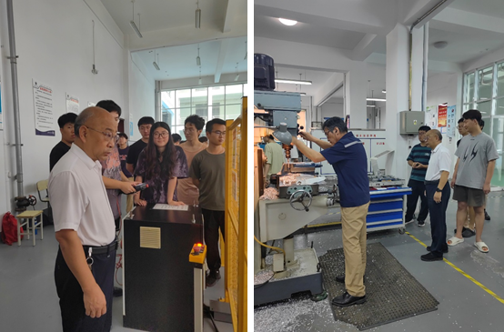 华体会(中国)工学院一行还在日照职业技术学院机电工程系相关负责人的陪同下,实际考察了该系的实验室和实训基地。期间,双方就实验室建设、实训基地管理、学生实训教学等方面进行了深入交流,并就未来的合作达成了初步意向。双方一致表示,将依靠各自的优势资源,建立金工实习实训基地共享机制,为学生提供更加丰富多元的实践平台。